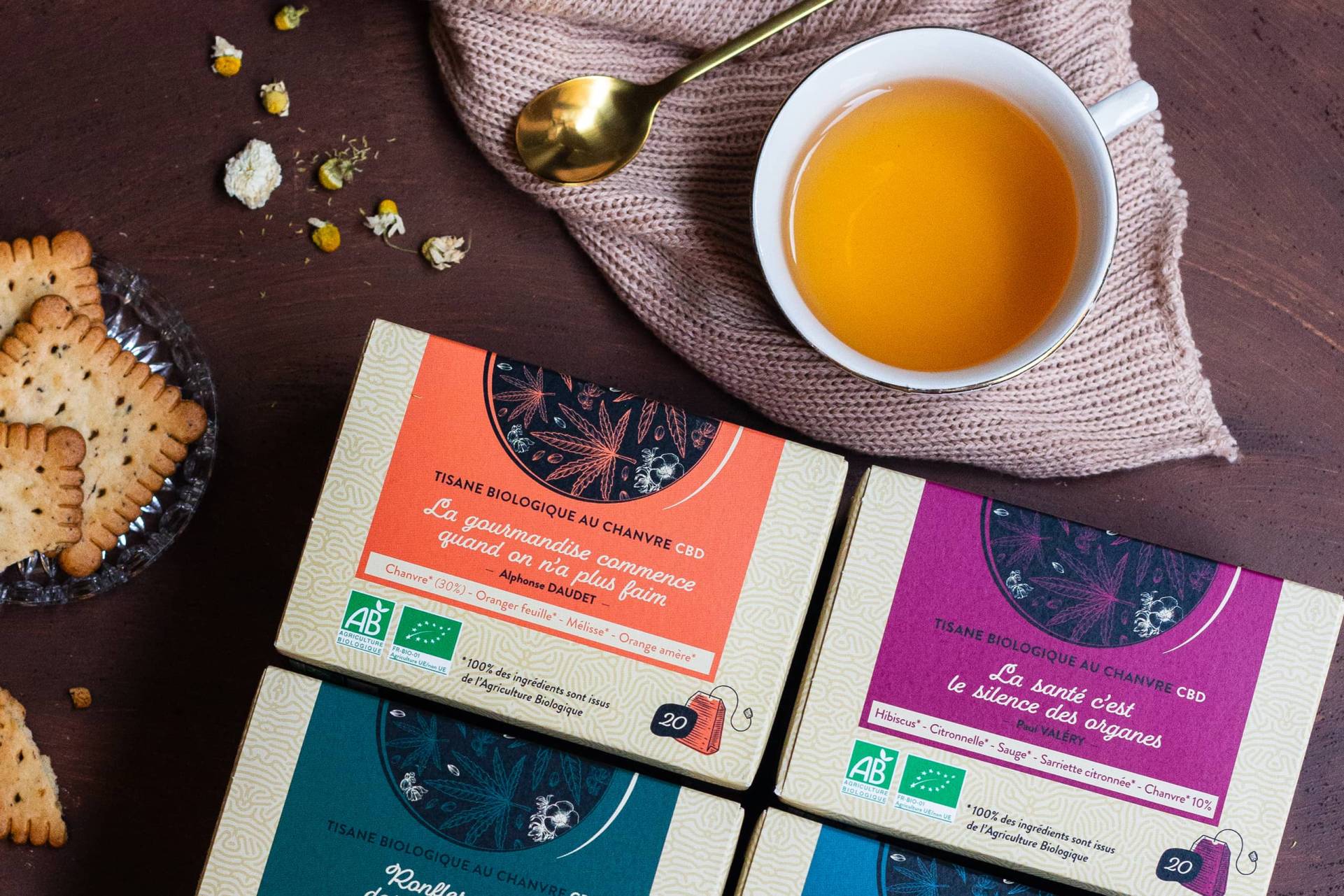 Découvrez notre gamme de tisanes au chanvre CBD élaborées en France et certifiées AB.